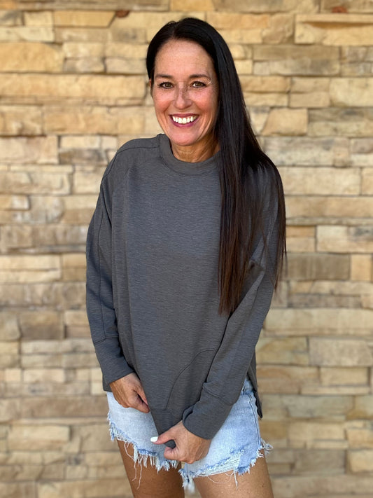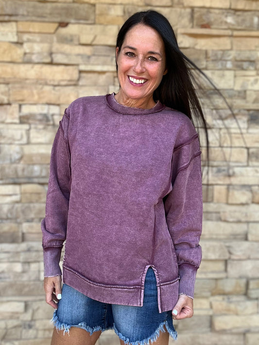 Mono B Burned Out V-Neck Sweatshirt, Cherry Red