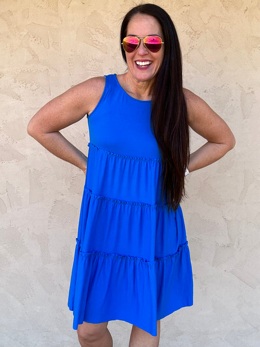 Zenana Sleeveless Tiered Dress, Ocean Blue