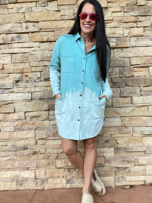 Tie Dye Shirt Dress, Blue