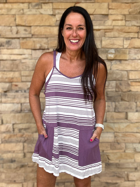 Sold outV-Neck Striped Dress, Purple