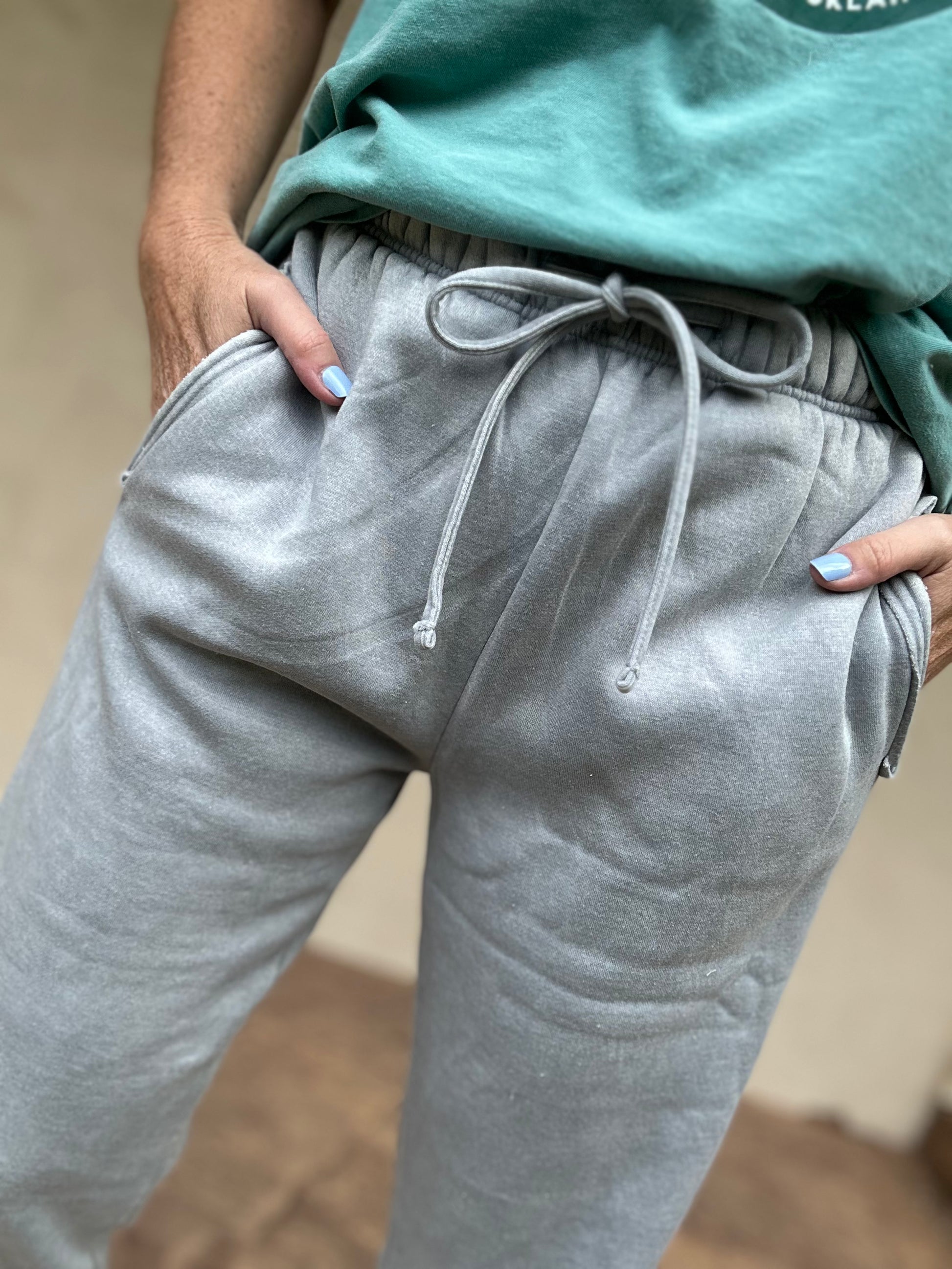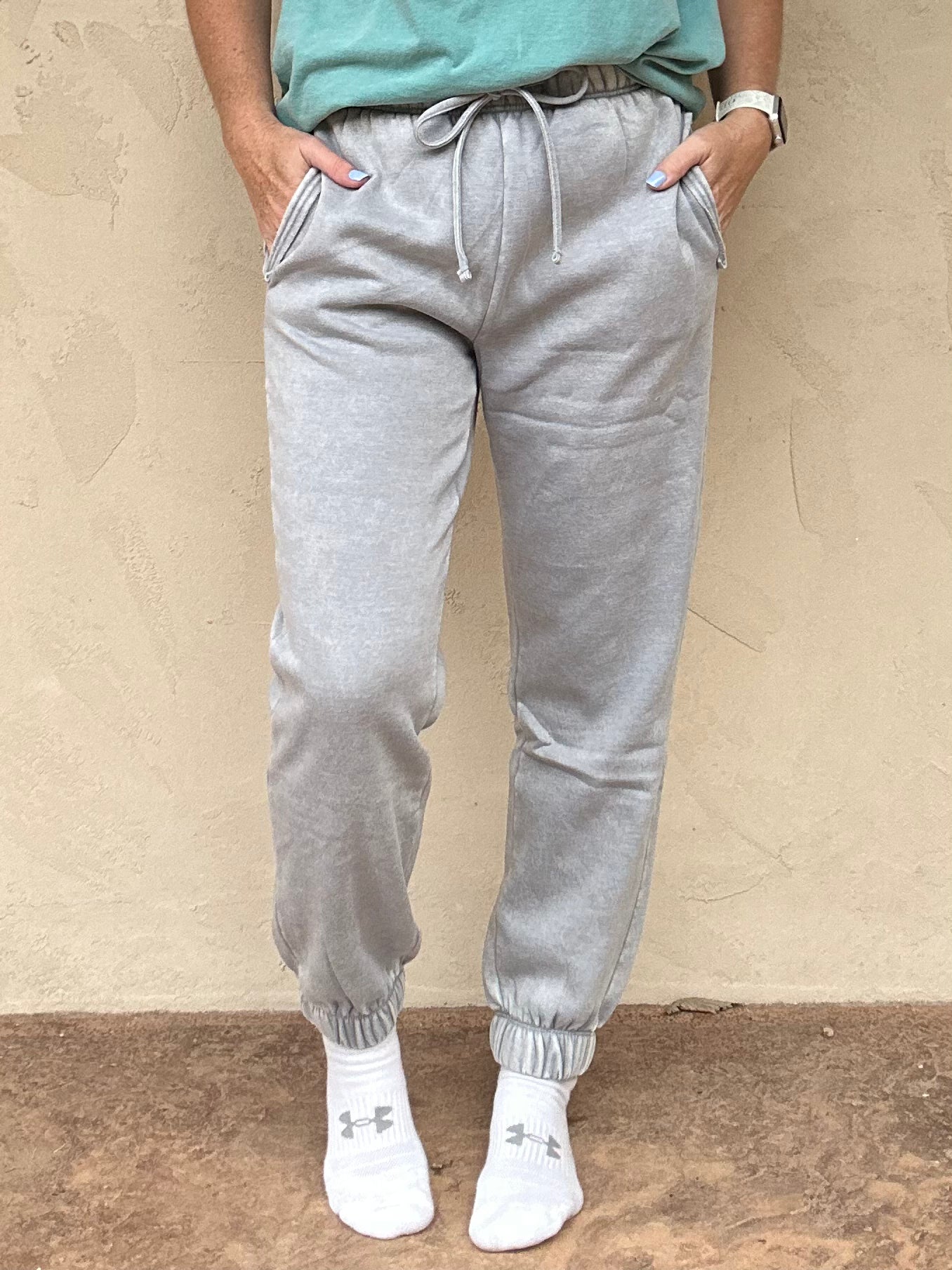Zenana Acid Wash Fleece Joggers, Sleet Grey